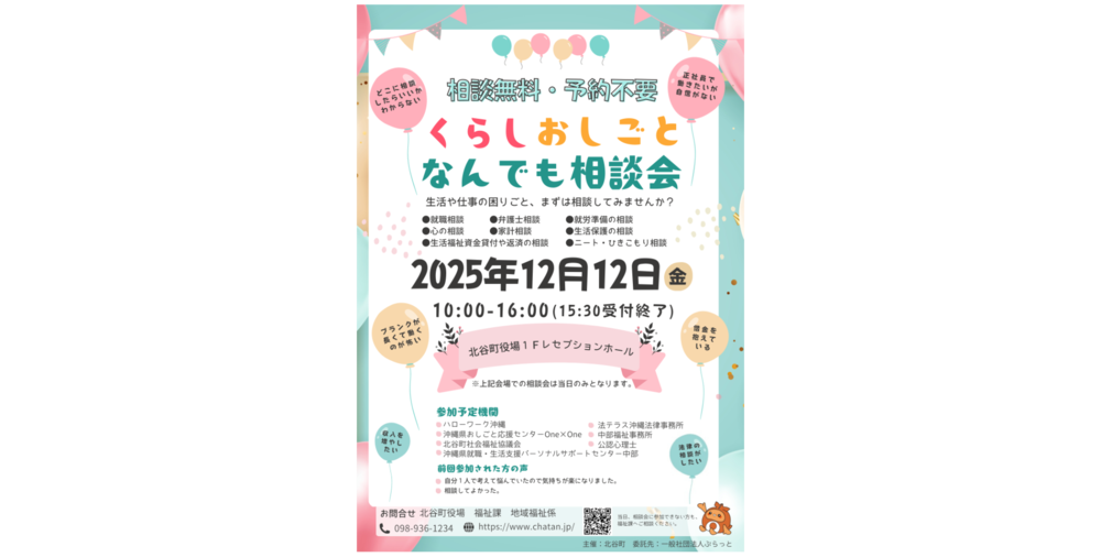 日時:令和7年12月12日金曜日 10時から16時まで(15時30分受付終了)