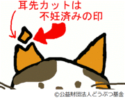 ※さくらねこTNR(Trap/捕獲し、Neuter/不妊去勢手術を行い、Return/元の場所に戻す、その印として耳先をさくらの花びらのようにV字カットする。)