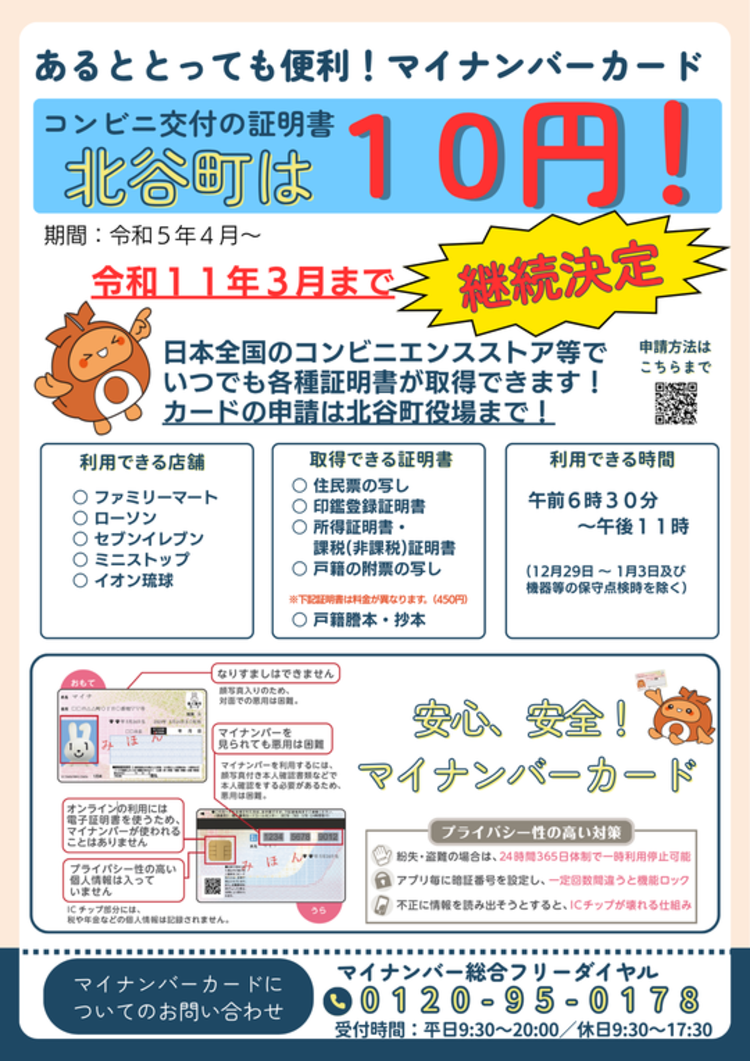 北谷町では、令和5年4月から令和11年3月末まで!コンビニのマルチコピー機で証明書を取得すると1通10円で取れます!(戸籍謄本・抄本は450円)