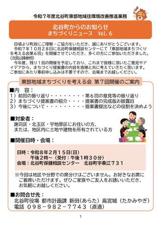 第7回は、第6回までのご意見および令和7年末に行った意見募集の内容をとりまとめた、完成版「北谷町東部地域まちづくり提案書」を発表しますので、ぜひ、会場までお越しください!